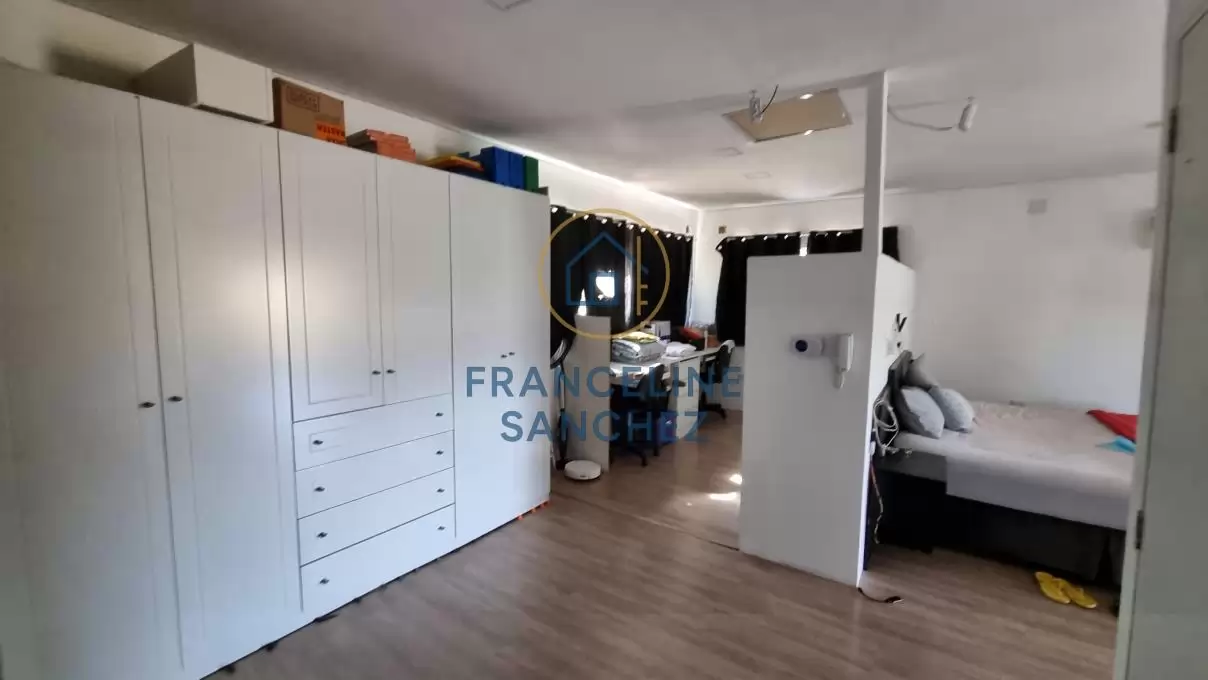 Suíte espaçosa, com ar-condicionado, armários planejados e espaço para escritório